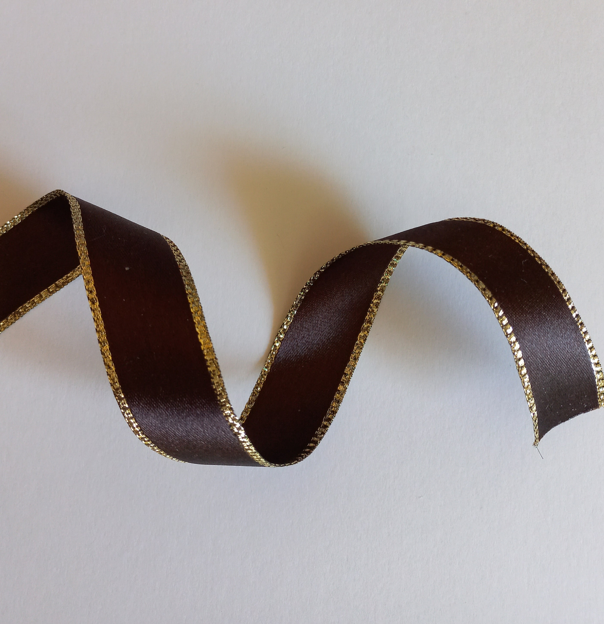Stuha atlasová hnědá se zlatým okrajemSkladem 4 m8,00 Kč/ m
