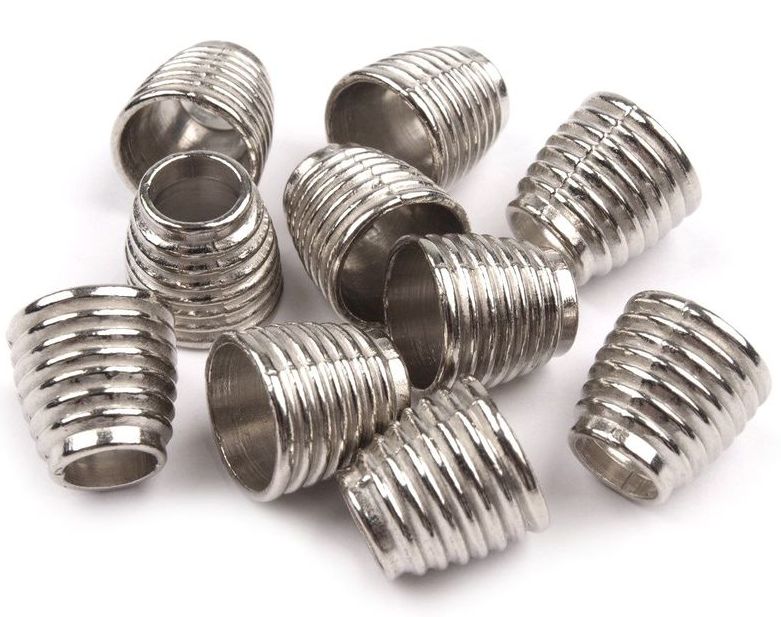 Kovovou koncovku využijete k zakončení šňůrek, které lemují rukávy, kapuce nebo spodní lem mikin a bund. Zabraňuje vytažení šnůry z tunýlku. Její povrch není hladký, ale vroubkovaný. Pratelný kov.
