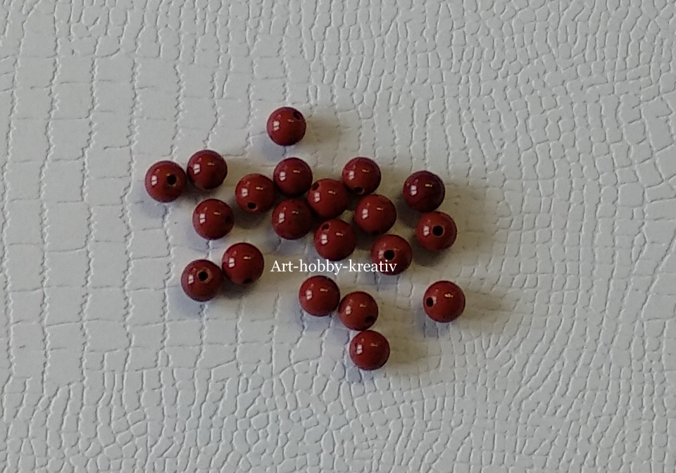 Balení obsahuje 40 ks korálků z přírodního kamene v barvě rezavě červené.