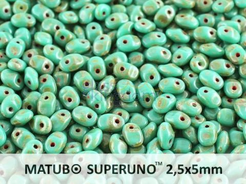 Mačkané korálky SUPERUNO v provedení Picasso zelený tyrkys skvěle doplňují dvoudírkové korálky Superduo.