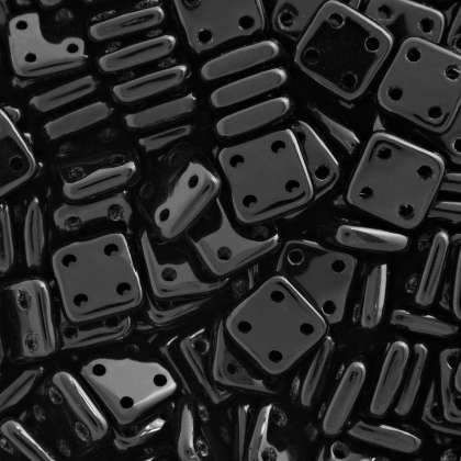 Čtyřdírkové korálky CzechMates QuadraTile 6 mm v provedení Opaque Luster Champagne, hrany těchto korálků jsou zaoblené, průtahy jsou široké 0,9 mm, aby se dala nit několikrát dírkami provléknout.