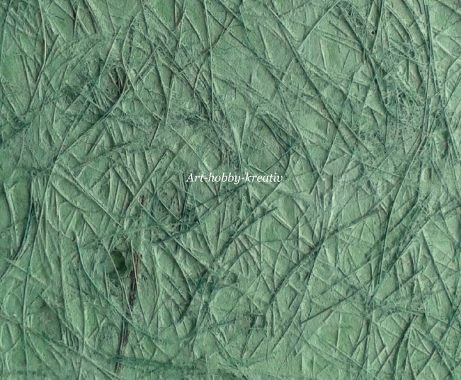 Ruční papír s gramáží cca 80 g/m2 zelený se spoustou vláken.