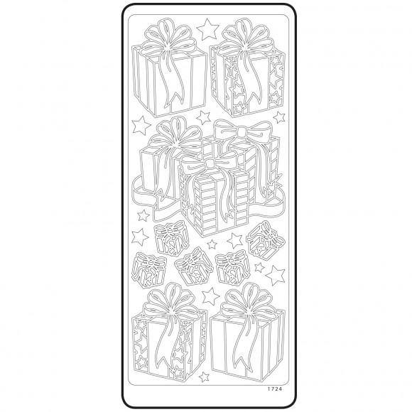 Balení obsahuje dárečky v různých podobách v barvě zlaté. Tyto obrysové samolepky se hodí na jak na přáníčka, tak i při výrobě přání z papírové krajky.