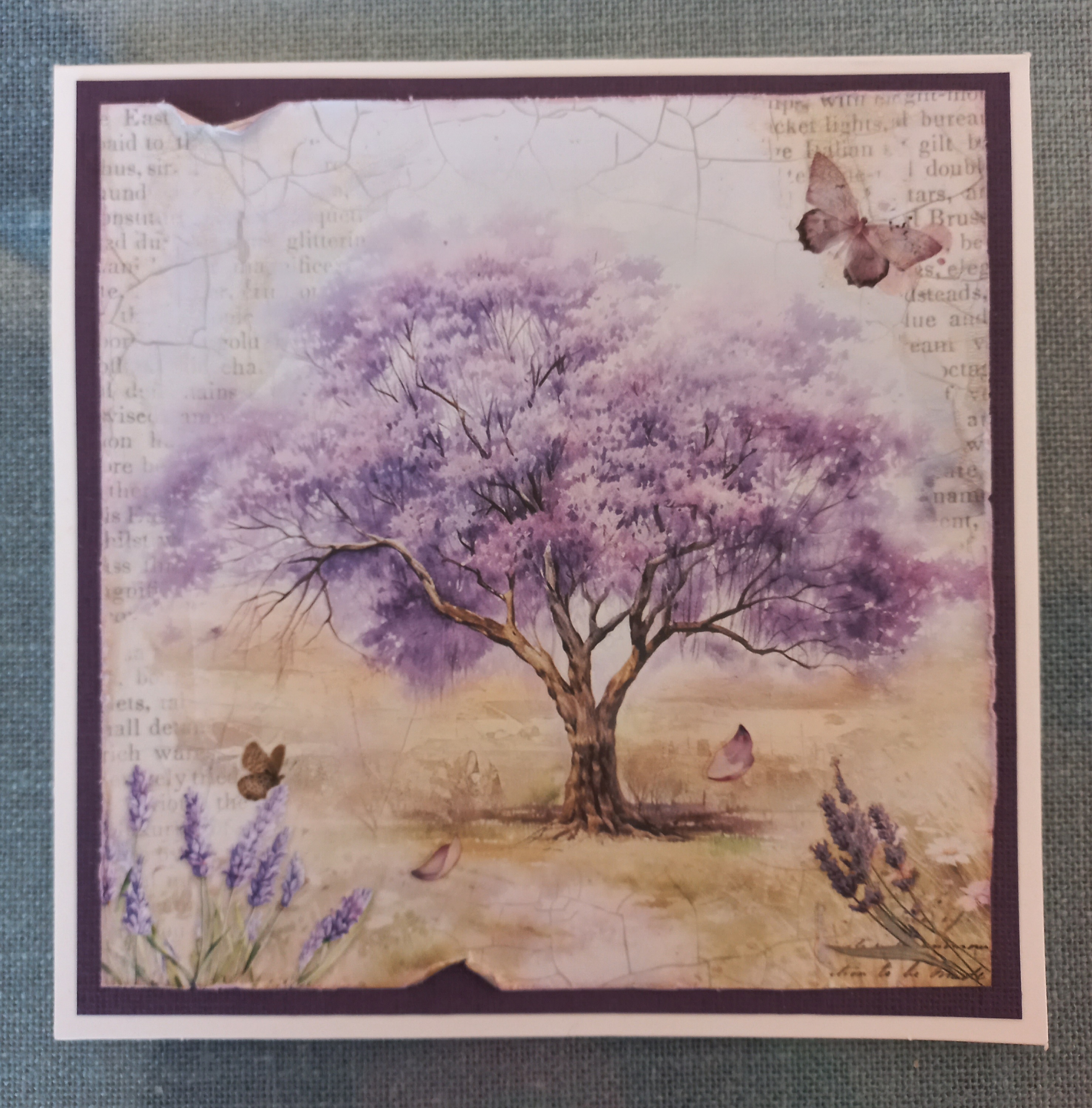 Přání z krásné série papírů Lavender od Stamperie.