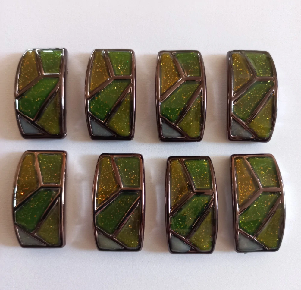 Plastový kabošon je dvoudírkový.