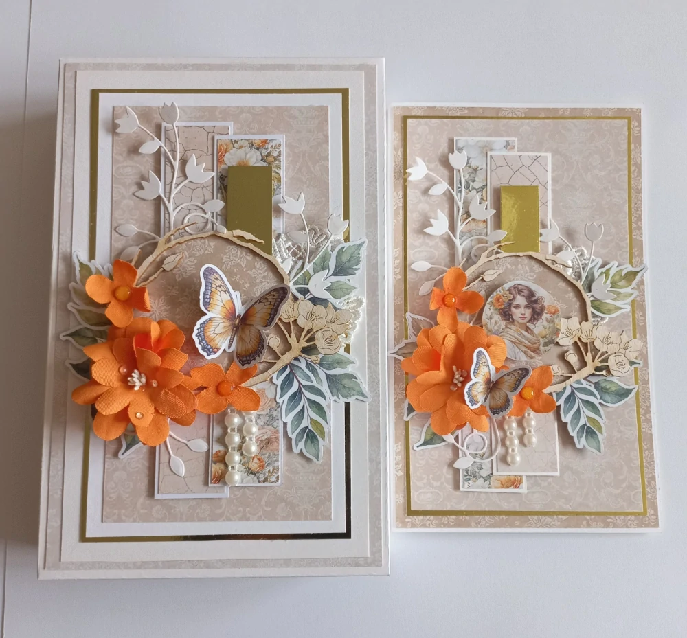Přání s krabičkou v jemným odstínech béžové, oranžové a zlaté je vyrobeno z nádherné kolekce Paula´s Attic z produkce polského výrobce ScrapBoys. Děkuji za inspiraci paní Agniezce Piwko.