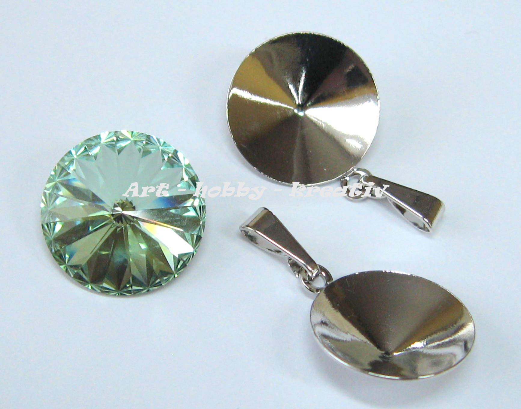 Přívěšek ve tvaru kotlíku, vhodný k nalepení Rivoli kamínku, stříbro AG925, rhodiováno.