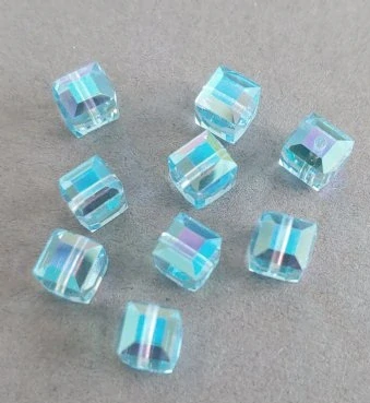 Swarovski - Cube Beads, 6 mm - Aquamarine AB