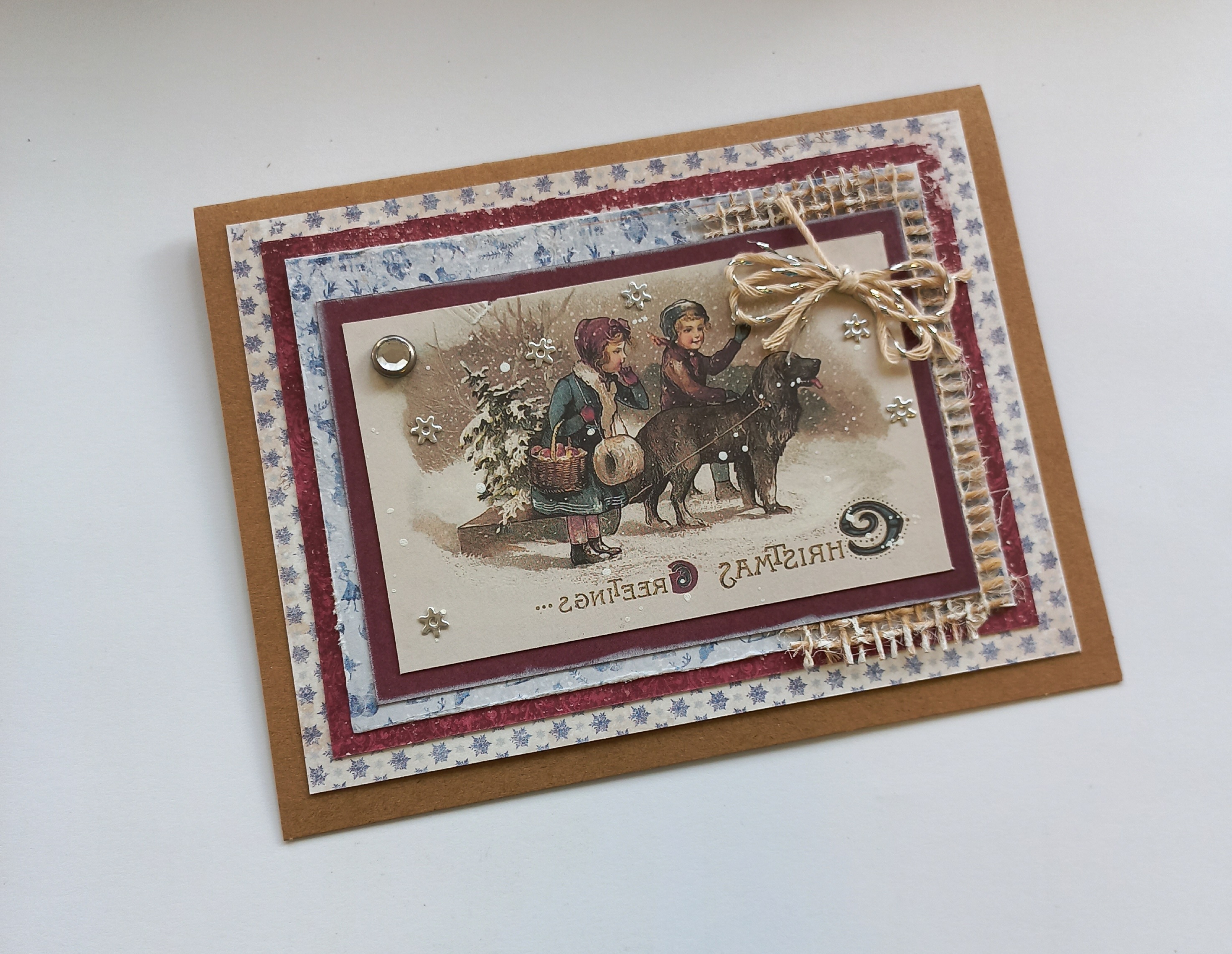 Vánoční přání o rozměrech 12,6 x 16,5 cm je vyrobeno z kvalitních papírových čtvrtek z produkce Maja Design ve stylu vintage.